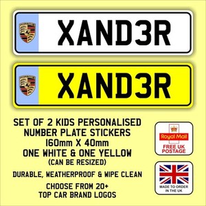 2 x Personalised Vinyl Number Plate Stickers For Kids Toy Cars - Porsche £3.75Save up to 20% with Multi-buy
