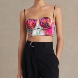NEW BEC BRIDGE Crop Top sz 8 US 4 IRREDESCENCE BODICE Pink Lurex Cute Sexy