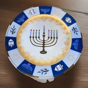 Vintage 2004 Avon Ceramic Hanukkah Plate Gold Trimmed 8” Menorah Dreidel Star