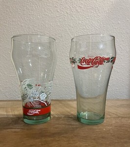 Vintage Libbey Set of 2 Coca Cola Christmas Glasses Pinecone Snow Bells of Holly