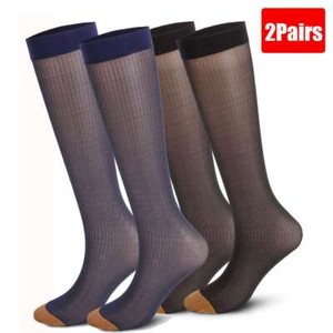 2 Pairs Mens Ultra Thin Dress Socks Silk Sheer Business Striped Socks Work US