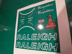 Raleigh Competition decal set. 7 decals in total. 1980's type.Original artwork.