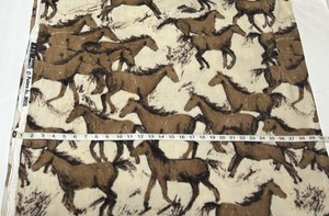 New Anti-Pill Fleece fabric by the yd - Running Free - Brown Horses on Light Tan