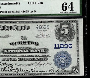 1902 $5 The Webster National Bank of Massachusetts CH#11236 PMG 64 Fr.606 (FXZ)