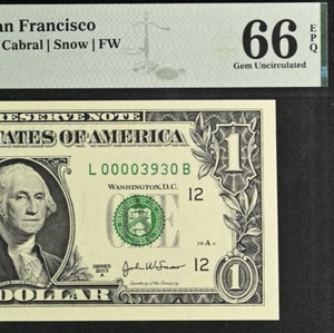 2003A $1 Federal Reserve Note PMG 66EPQ popular wanted low serial number 3930