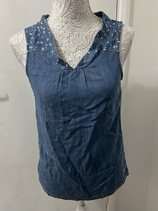 Weird Fish Top Dandelion Wish Print UK 8 Blue Denim Sleeveless Blouse V Neck