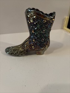 Vintage Fenton Iridescent Amethyst Carnival Glass Daisy & Button Boot Shoe