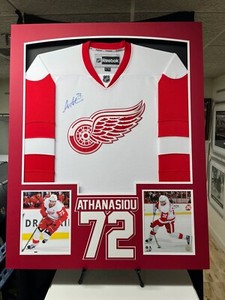 Andreas Athanasiou Red Wings Signed Jersey and Custom Matting