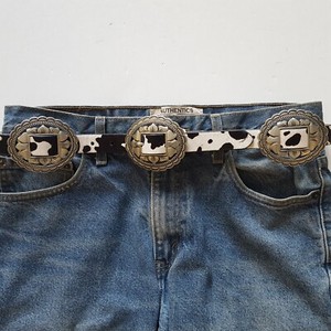 Western-Inspired Concho Belt in Genuine Cow Hair Leather