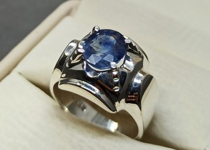 Natural 6 Carat Blue Sapphire Star Sterling Silver 925 Handmade Men Elegant Ring