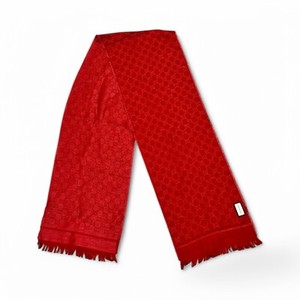 Authentic Gucci Scarf GG Monogram Logo Red Wool Fringed