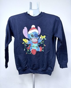Disney Lilo & Stitch Christmas Jumper Kids 5-6 Yrs S Navy Xmas Sweatshirt