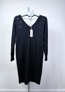 White Company Black Wool Blend Knit Dress UK12 L NWT Star Embellished Smart