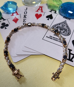 925 Sterling Silver Gold Plated Bracelet w/ CZ &Blue Sapphire Stones 7.5"