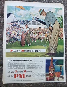 Vintage 1952 PM Whiskey Craig Wood Golf Advertising Ad USA 13”x10”