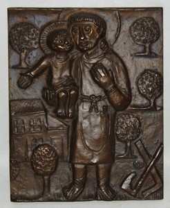 Plaque, Eva Limberg, St. Hubertus, bronze, saint, relief, sacred art