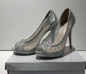 David's Bridal Dreama Silver Size 9 Peep Toe Heels