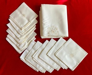 SHIMA S.L. TABLECLOTH + 12 NAPKINS SET Embroidered Ivory Rectangle - SPAIN - NEW