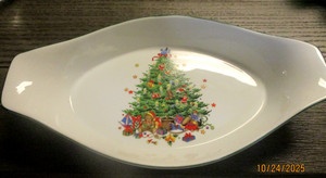 Vintage Au gratin Baking Dish With Christmas Tree Design 12 1/2 Long Made Japan