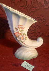 Porcelain Cornucopia Vase Vintage Romanian 9" TALL Lovely Piece dated 1957