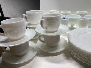 RARE- Vintage:Imperial Milk Glass Grape Pattern- Set for 6-8 Mid Century