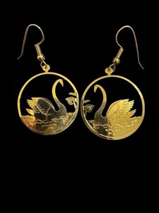 Goldmarks Brand Gold Tone Swan Cut Out Filigree Bird Round Earrings E1