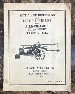 Allis-Chalmers No. 2a Series Tractor Plow Repair Manual Parts List TPL-57E