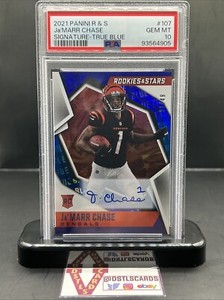 2021 Rookies & Stars - JA'MARR CHASE ROOKIE AUTO TRUE BLUE /49 PSA 10 Gem #107
