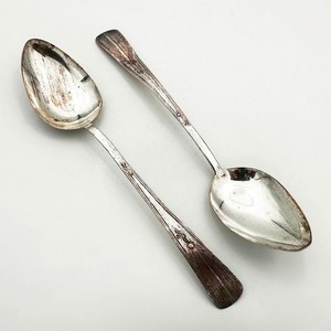 PAIR BRIGHT CUT TEASPOONS STERLING SILVER GEORGE III LONDON 1802 J PERKINS I