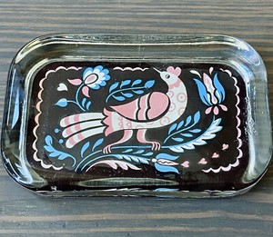 Vintage Yorkraft Pennsylvania Dutch Distelfink Glass Paperweight Folk Art 4.25”L