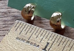 Goldtone Wide Band Style Hoop Small Pierced Earrings Floral Textured NWOT 1/4"