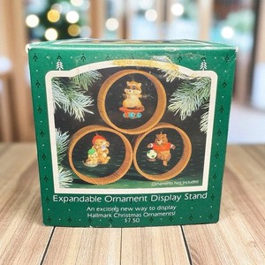 NIB Vintage 1985 Expandable Ornament Display Hallmark Rings 3 Wood Rings Gold