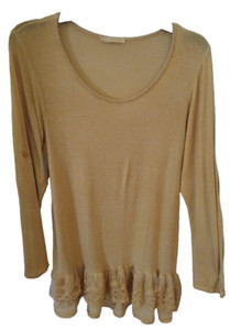 Made In Italy Woman's Gold Tunic Top with lace embellishment- unmarked size L/XL