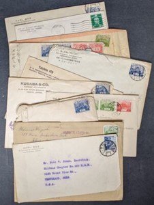 EDW1949SELL : JAPAN Interesting group of 7 Used Stampless covers.