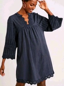 Soft Surroundings Heloise Eyelet Sleeve Boho Tunic Pintuck Embroidery Size Large