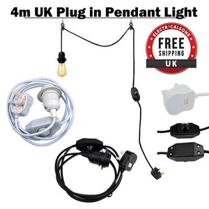 4m Cable UK Plug in Pendant Vintage Lamp Light E27 Fitting Dimmer Switch Holder