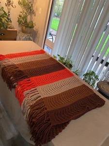 Vintage 1970 Afghan Blanket Chevron Browns Orange Yellow 74" X 96" Crochet Knit