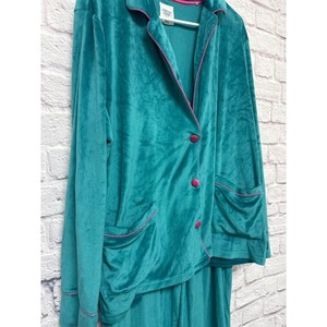 Chelsea Peers Turquoise Velour 2 Piece Pajama Loungewear Set Pink Trim SZ XL