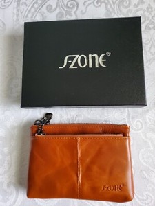 S-ZONE Women Fashion Genuine Leather Wallet Credit Card Holder Coin Purse Brown