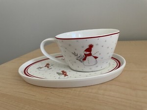 Grace Teaware Fine Porcelain Christmas Snack Plate and Cup Saucer Set Snowman
