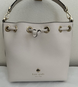 NWT Kate Spade Emma Small Pebble Leather Top Handle Bucket Bag $379 Parchment