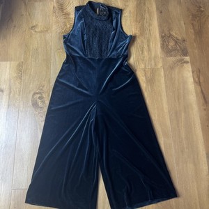 M&S Collection Slit Back Lace/Velour 3/4 Lnth Wide Leg Jumpsuit Size 16 Reg