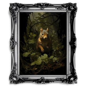 Squirrel in Moody Woodland Wall Art Dark Cottagecore Vintage Dark Academia Print
