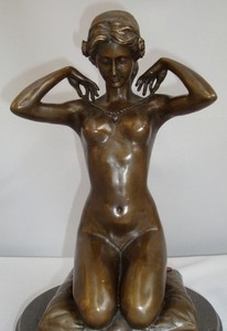 Statue Damsel Naked Sexy Art Deco Style Art Nouveau Style Bronze Signed Sculptur