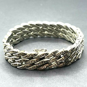 Vintage Smoky Quartz Bracelet Silver Clear Brown Gemstone Articulated Link