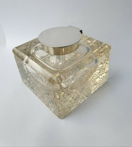 ANTIQUE SOLID SILVER GLASS WILLIAM HUTTON INK BOTTLE INKWELL Bham 1928