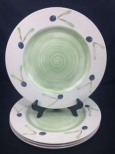 STUDIO By John Tams BLACK OLIVES Earthenware DINNER PLATES England SET OF 4