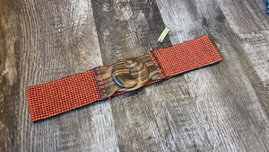 NWT Orange Beaded Stretch Belt With Wood Clasp Buckle From Bali, Indonesia M/L