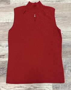 Y2K Mock Neck Tank Top Red Shimmer Christmas Camisole Silk Blend Sz Small