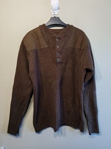 LL Bean Henley Merino Lambswool Pullover Sweater Brown Commando Elbow Patches XL